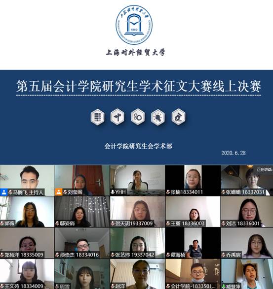 6月28日下午,我院祝賀60周年校慶——會(huì)計(jì)學(xué)院研究生學(xué)術(shù)論壇,暨第五屆研究生學(xué)術(shù)征文大賽決賽在騰訊會(huì)議線上成功舉行。本次活動(dòng)面向全校研究生進(jìn)行學(xué)術(shù)科研征文研討,歷時(shí)三個(gè)月,共收到校內(nèi)各專(zhuān)業(yè)同學(xué)投稿19篇。經(jīng)過(guò)初賽專(zhuān)家組盲審打分,共有12篇論文進(jìn)入決賽。今天,會(huì)計(jì)學(xué)院副院長(zhǎng)楊慧輝教授、臧慧萍副教授、趙洋博士、鄢姿俏博士作為嘉賓評(píng)委出席本次活動(dòng)。