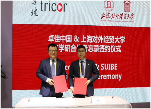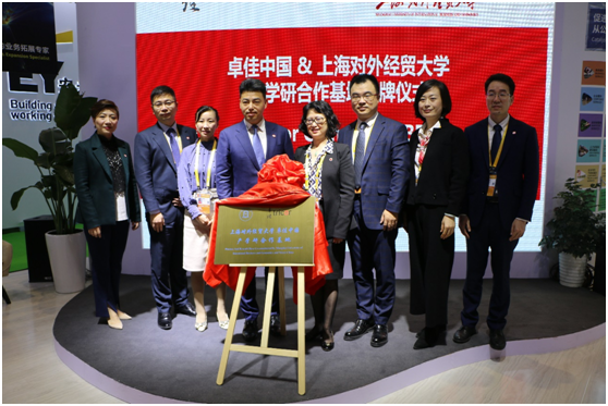 陳潔與張海亮共同為“上海對(duì)外經(jīng)貿(mào)大學(xué) 卓佳中國(guó)產(chǎn)學(xué)研合作基地”揭牌。