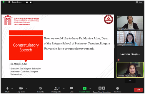 為更好的加強國際交流合作,深度融合國際學術環境,有效開展中外學術對話,11月20日,會計學院聯合美國佩斯大學、美國羅格斯大學、英國謝菲爾德大學、英國鄧迪大學、英國愛丁堡龍比亞大學、澳大利亞迪肯大學、土耳其杜庫茲伊魯爾大學等知名大學共同在線舉行為期兩天的“財務與會計”國際學術研討會。副校長陳潔、會計學院全體班子成員、學院教師及研究生代表參加開幕式,會計學院副院長楊慧輝教授主持研討會。