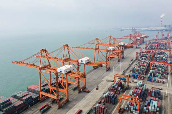 這是中國(廣西)自由貿易試驗區欽州港片區的集裝箱碼頭(2019年11月23日攝,無人機照片)。新華社記者曹祎銘攝