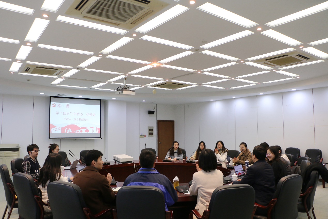 為繼續(xù)加強(qiáng)“四史”學(xué)習(xí)教育,深化黨員對(duì)初心和使命的理解,12月23日下午副校長(zhǎng)、會(huì)計(jì)學(xué)院院長(zhǎng)徐永林在信息樓501為學(xué)生黨支部黨員作了題為《學(xué)“四史”、守初心、擔(dān)使命》的專題黨課。學(xué)院黨委副書(shū)記張晴晴、黨支部書(shū)記、輔導(dǎo)員代表一同出席學(xué)習(xí)。