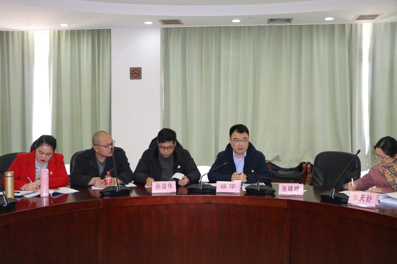 黨委書記談華進行了總評。他肯定了過去一年里各支部在基層黨建方面取得的成績,同時指出了四點不足:一是政治理論學習不夠。結合專業與黨建開展理論研究不夠,利用“學習強國”平臺開展學習不夠;二是制度執行規范性不夠。存在“三會一課”不按期開展、《支部生活記錄本》未及時記錄的情況;三是支部書記帶頭作用發揮不夠。黨建領導作用不夠有力,工作創新不足突出;四是示范支部的示范性不夠。沒有凝練特色,發揮優勢,起到輻射帶動作用。最后提出三點希望:希望各基層黨支部書記在新的一年,繼續帶領支部黨員加強政治理論學習,提高政治站位,切實發揮中堅力量的帶頭作用;繼續深入貫徹學習習近平新時代中國特色社會主義思想和關于基層黨建工作的重要指示要求,發揮好支部的戰斗堡壘作用,切實做到“七個有力”;繼續開動腦筋,發揮才智,積極創新,創建“一支部一品牌”,推動學院基層黨建工作更上一個新臺階,獻禮建黨一百周年。