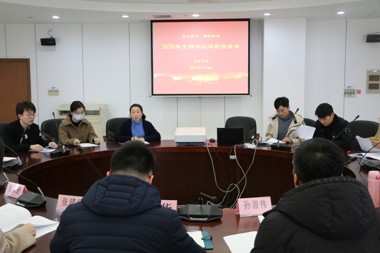 根據學校《關于開展2020年度基層黨組織書記抓基層黨建工作述職評議考核的通知》,會計學院黨委于2021年1月14日上午10:30在信息樓501會議室召開黨支部書記抓基層黨建工作現場述職評議考核會。院黨委書記談華、副書記張晴晴、黨委委員張天舒、孫淑偉,各教工支部和學生支部書記和黨員代表出席會議,專職組織員陳晶晶主持。