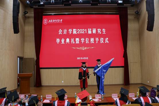 4月9日下午,我院2021屆研究生畢業(yè)典禮暨學(xué)位授予儀式在松江校區(qū)新圖書(shū)館思源報(bào)告廳舉行。上海對(duì)外經(jīng)貿(mào)大學(xué)副校長(zhǎng)、會(huì)計(jì)學(xué)院院長(zhǎng)徐永林、會(huì)計(jì)學(xué)院黨委書(shū)記張嶸、副院長(zhǎng)楊慧輝、張?zhí)焓妗O淑偉出席了畢業(yè)典禮。碩士生導(dǎo)師代表、全體碩士畢業(yè)生共同參加本次典禮。典禮由會(huì)計(jì)學(xué)院黨委副書(shū)記張晴晴主持。