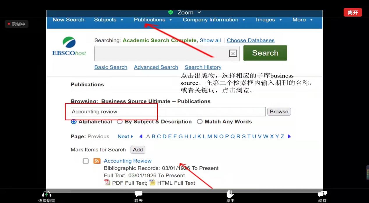 10月21日晚上,EBSCO高級培訓師蔣哲老師通過ZOOM線上會議面向我院2021級研究生新生開展了關于“論文檢索及英文期刊推薦”的專場培訓。學院2021級全日制研究生在學思樓D2、非全日制研究生在云端,共同參加了這場培訓。