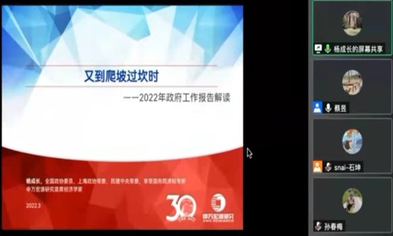 3月24晚,全國政協(xié)委員、上海政協(xié)常委、民建中央常委、享受國務(wù)院特殊津貼、上海市領(lǐng)軍人才、上海市政府特聘決策專家、上海申銀萬國證券研究所有限公司首席經(jīng)濟學家楊成長博士應(yīng)邀為上海國家會計學院學生和我院研究生開展了主題為“又到爬坡過坎時——2022政府工作報告解讀”的專題講座。學院數(shù)百名MPAcc研究生參與了此次講座。