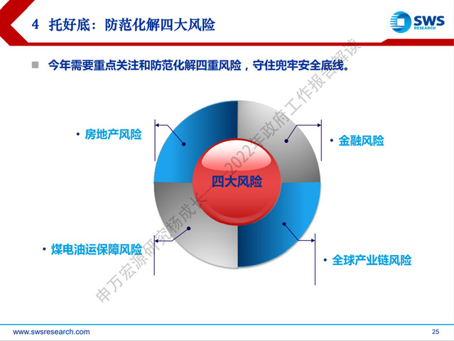 最后楊博士詳細闡釋了應(yīng)該如何防范化解四大風險:針對房地產(chǎn)風險要堅持房子是用來住的不是炒的,穩(wěn)地價、穩(wěn)房價、穩(wěn)預(yù)期;針對金融風險要設(shè)立金融穩(wěn)定保障基金,壓實地方屬地負責、部門監(jiān)管責任和企業(yè)主體責任等;針對煤電油運保障風險要保障煤炭電力供應(yīng)、降低企業(yè)生產(chǎn)經(jīng)營成本和實施全面節(jié)約戰(zhàn)略;針對全球產(chǎn)業(yè)鏈風險要化解初級產(chǎn)品供應(yīng)鏈風險、促進產(chǎn)業(yè)優(yōu)化升級、強化企業(yè)創(chuàng)新主體地位、提升科技創(chuàng)新支撐能力和突破供給約束堵點。