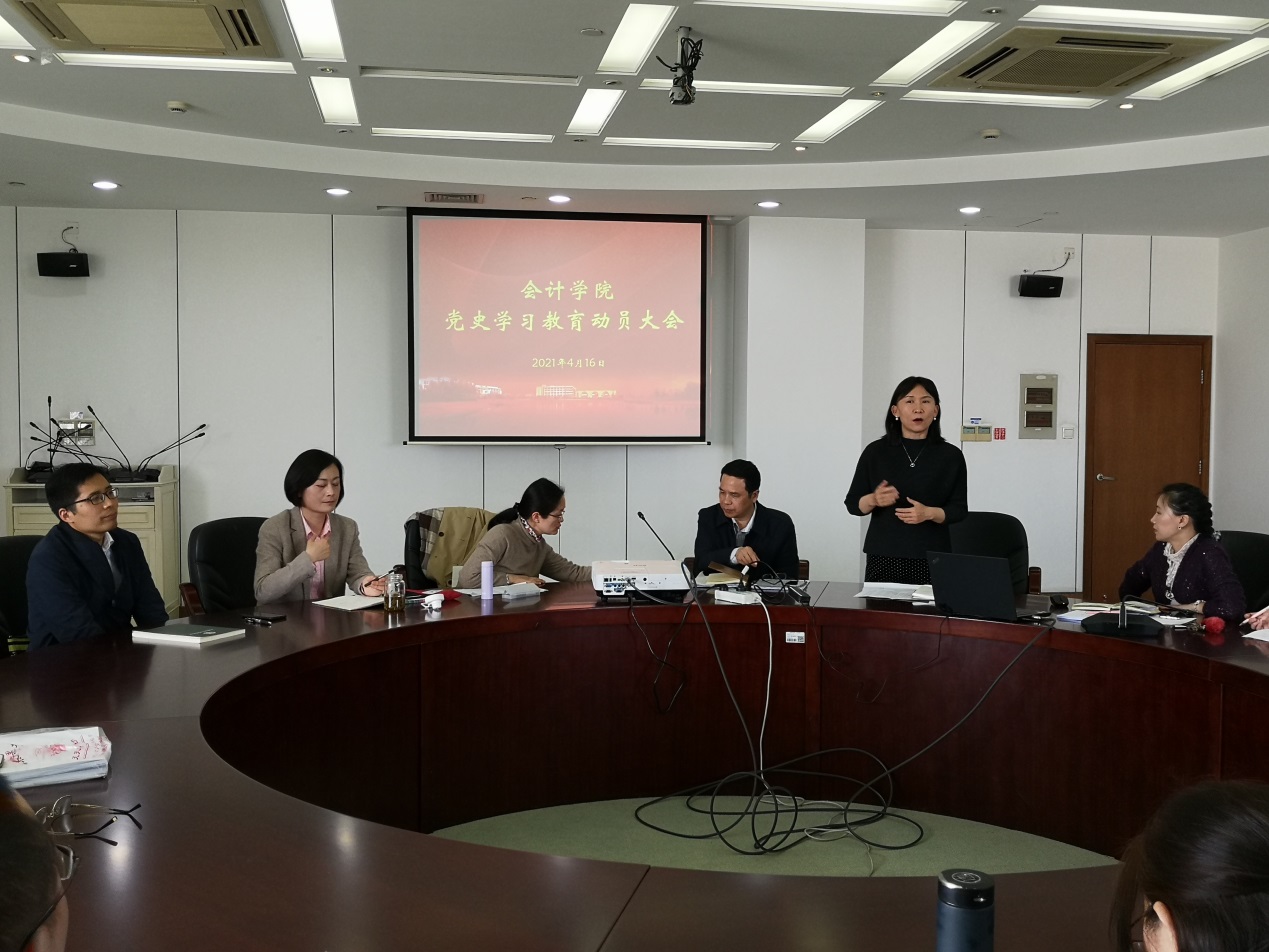 4月16日下午,會(huì)計(jì)學(xué)院在信息樓501會(huì)議室召開黨史學(xué)習(xí)教育動(dòng)員大會(huì)。全體教職工黨員及學(xué)生支部書記參加會(huì)議。