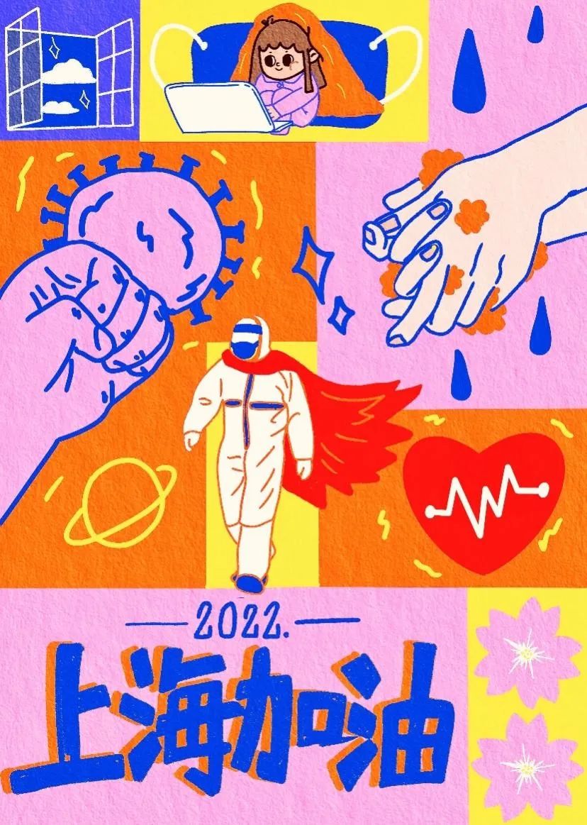 以作品中用窗戶外風景、上網課的學生表達疫情下同學們的生活狀況,用穿著披風的抗疫人員與抗疫有關的符號表達對抗疫中做出奉獻的每個人的致敬,用充滿生機的顏色和美麗的櫻花寓意疫情一定會過去、上海一定能夠度過難關。在這里也感謝每一個為抗疫而努力的學校、老師和同學,我們一定能夠度過疫情的難關!