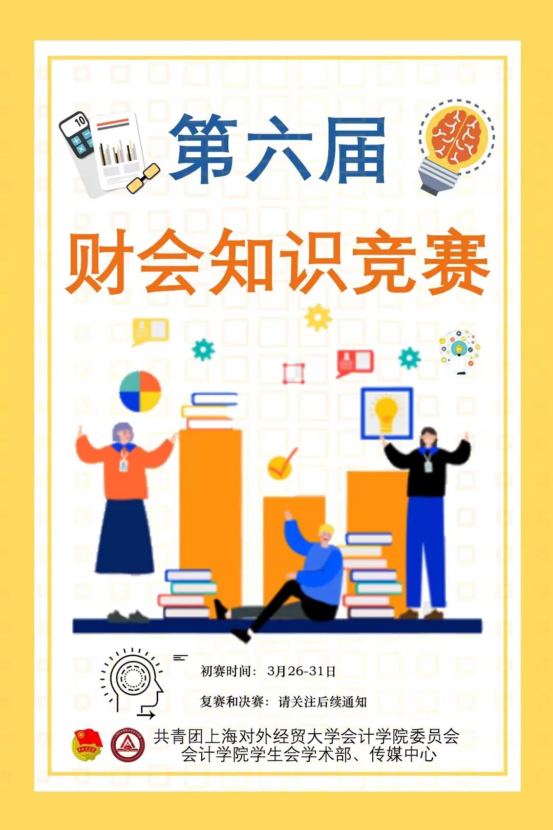 財會知識競賽是上海對外經貿大學會計學院學術部和傳媒中心聯合舉辦的校級品牌活動。作為財會文化節的組成部分之一,本活動旨在為對于財會知識感興趣的全校同學提供一個鞏固知識、運用知識、提高自我、展現自我的平臺,豐富我校學生的課外活動,突出我校學生的專業能力,加強學生綜合素質的培養。還有抵創新創業學分的機制哦!
