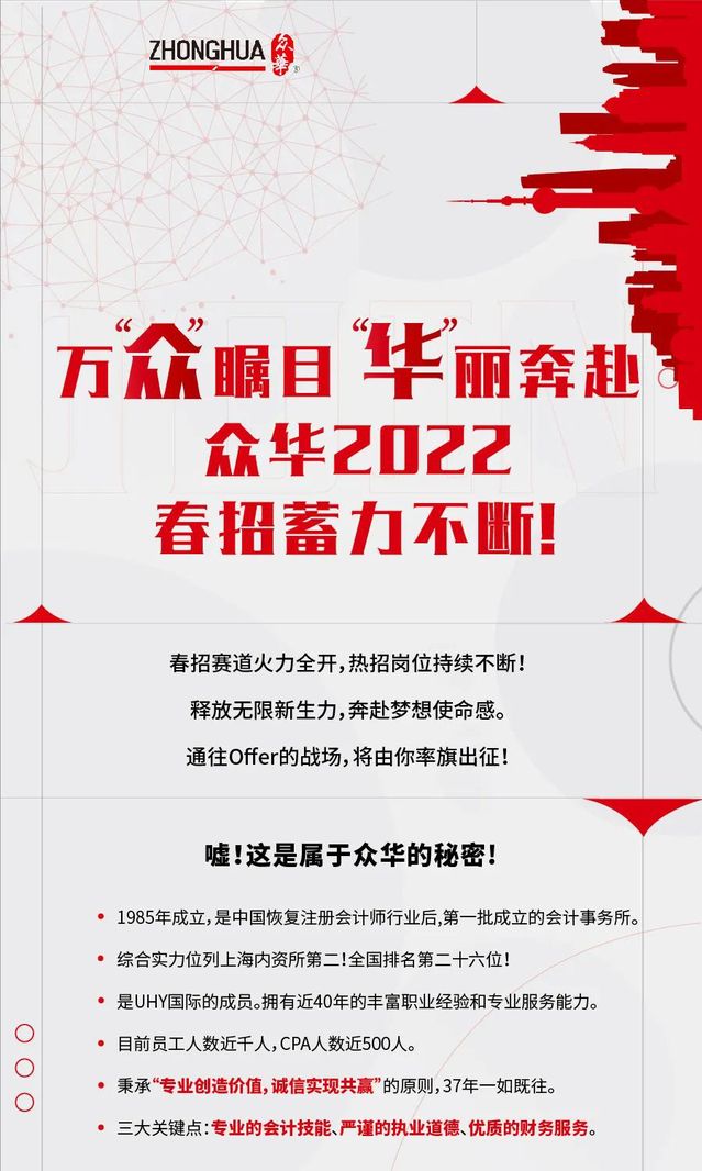 萬眾矚目 華麗奔赴——眾華會(huì)計(jì)師事務(wù)所2022春招蓄力不斷!