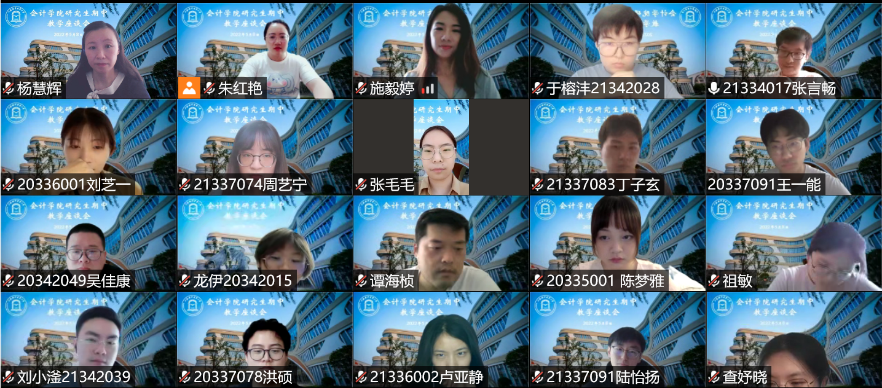 為做好研究生在線教學工作,促進教學質量全面提升,加強學院、教師、學生三者聯動,會計學院開展研究生“教學質量月”系列活動,確保研究生各年級培養管理和教育教學工作穩步進行,切實做到“空中學堂有名堂”。