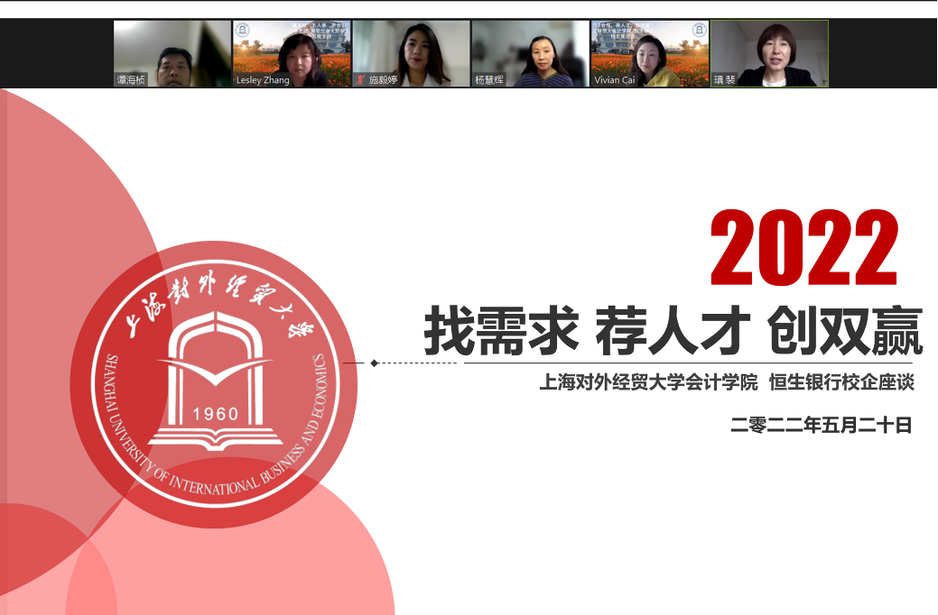 為貫徹落實黨中央、國務(wù)院關(guān)于高校畢業(yè)生就業(yè)工作的決策部署,落實教育部關(guān)于全國高校書記、校長訪企拓崗促就業(yè)專項行動,落實學校關(guān)于開展院長、書記訪企拓崗促就業(yè)專項行動的通知,深入落實學院就業(yè)工作“一把手”工程,會計學院于5月21日,邀請恒生銀行進行了在線洽談,雙方就自身單位近況、產(chǎn)學研合作新方向、學生就業(yè)需求和用人趨勢展開商討。恒生中國人力資源部招聘總監(jiān)蔡元旻、恒生中國人力資源部招聘經(jīng)理張翊,會計學院院長裴瑱教授、副院長楊慧輝教授、黨委副書記施毅婷、MPAcc中心副主任譚海楨出席了本次洽談。