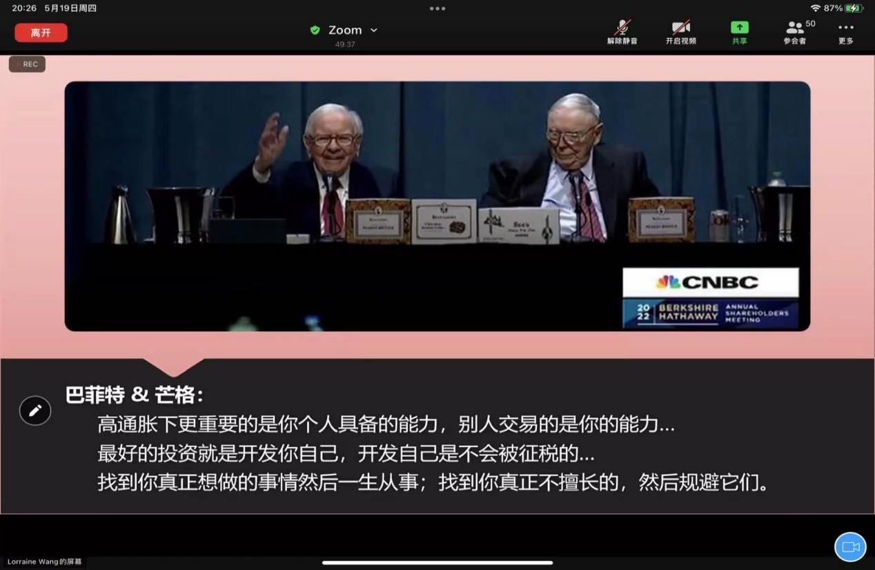 王艷女士以巴菲特和芒格的名言鼓勵同學們不要盲目,要根據大環境和發展趨勢來選擇,做好職業規劃,明確未來適合自身的崗位,把自我學習不斷成長看作最好的投資,在不斷的試錯中做出改變,找到真正適合且喜歡的職業。
