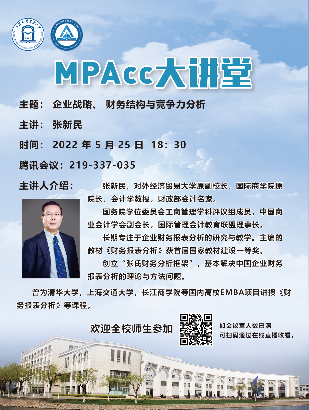 張新民教授,對外經濟貿易大學原副校長、國際商學院原院長,會計學教授,財政部會計名家。國務院學位委員會工商管理學科評議組成員,中國商業會計學會副會長,國際管理會計教育聯盟理事長。