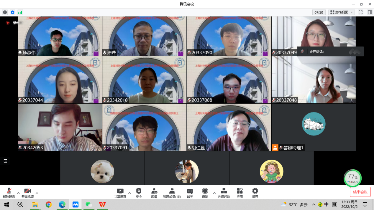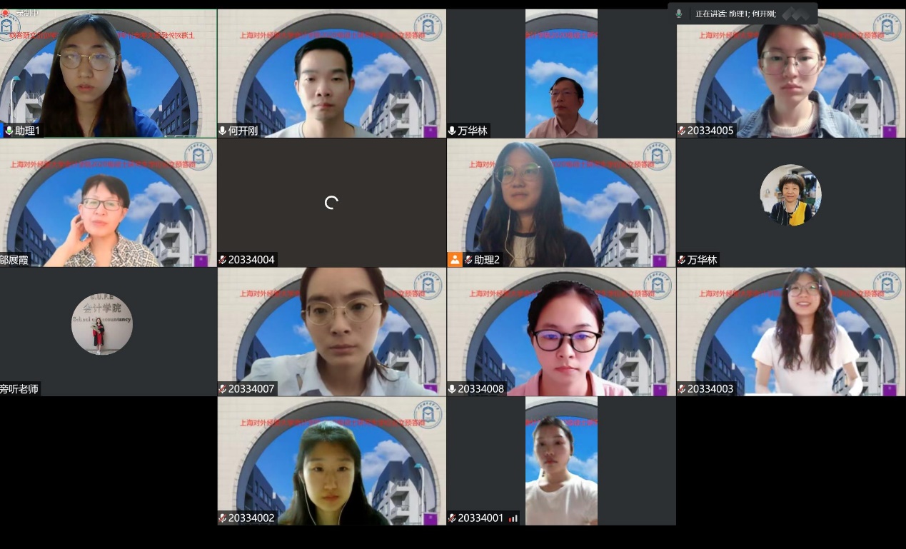 2022年9月25日和10月2日,會計學院2020級學術學位研究生和專業學位研究生學位論文在線預答辯順利舉行。來自復旦大學、暨南大學、上海大學、南京大學、華東理工大學、中央財經大學、上海財經大學、西南財經大學、江西財經大學、重慶工商大學、上海立信金融會計學院、上海國家會計學院等兄弟高校15名財會審領域教授和來自上海市審計局、上海市財政局、上海華夏經濟發展研究院、立信會計師事務所、松江國有資產投資經營管理集團有限公司、匯付天下有限公司等單位的9名MPAcc行業產業導師,以及學院的碩士生導師共同組成了本次預答辯委員會。學院2020級34位會計學、財務管理、審計學學術碩士研究生和136位會計碩士專業學位研究生參加。
