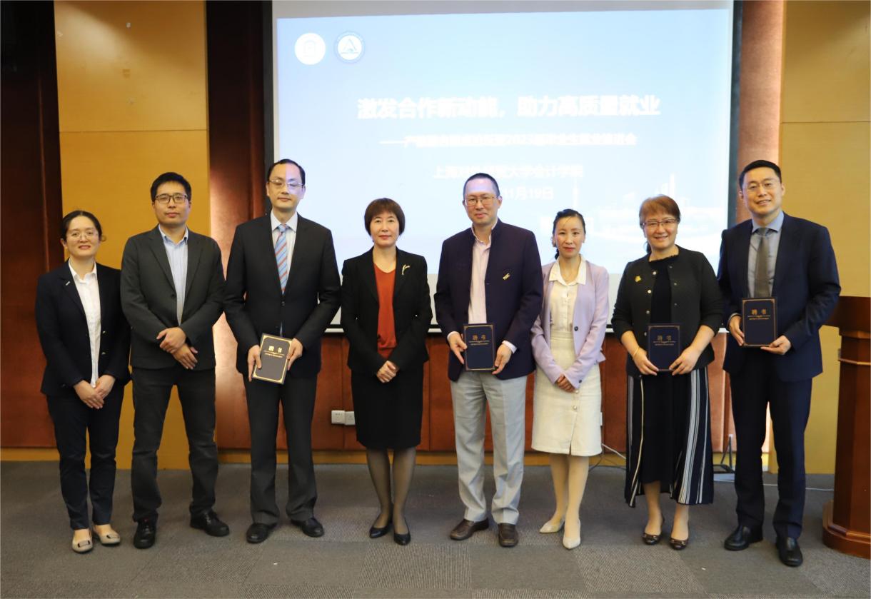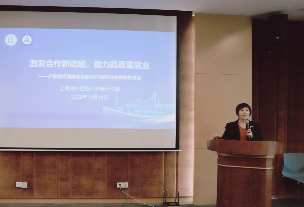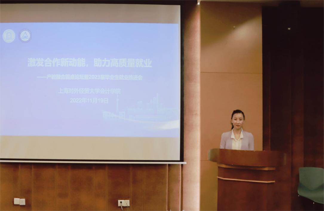 11月19日下午,“激發合作新動能·助力高質量就業”——會計學院產教融合圓桌論壇暨2023屆畢業生就業推進會在上海虹橋國際會議中心順利舉辦。學校辦公室主任、會計學院黨委書記張嶸,會計學院院長裴瑱,副院長張天舒、楊慧輝、孫淑偉和學院教師代表以及來自20家用人單位的31位企業導師和HR出席會議。會議由會計學院黨委副書記施毅婷主持。