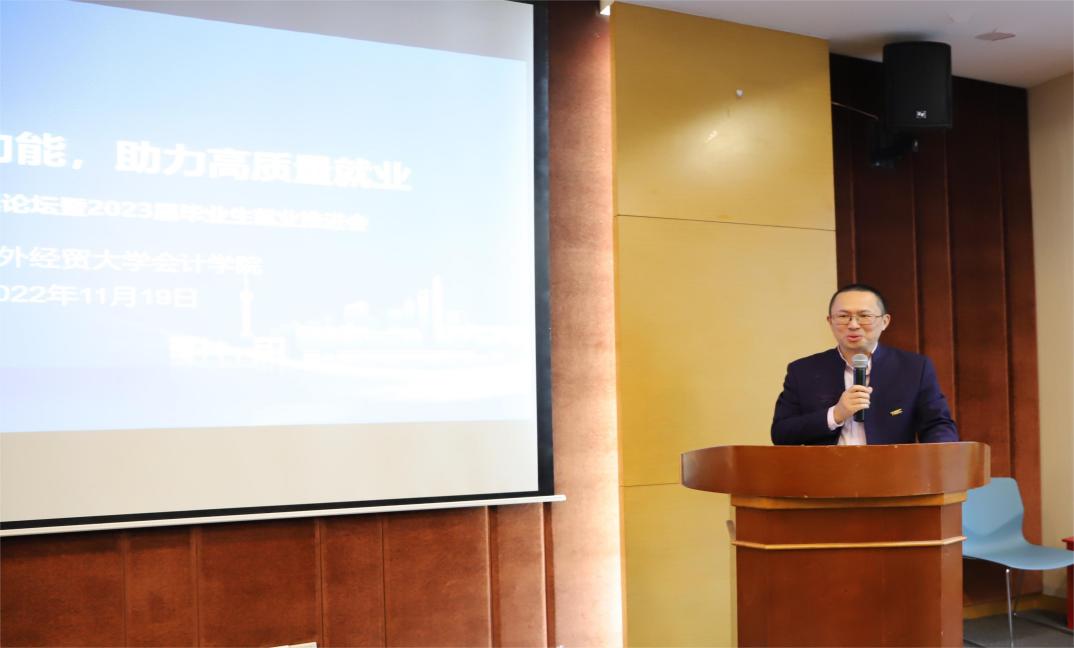 張嶸在會上介紹了會計學院“三全育人”及就業情況,并分析了2023年復雜嚴峻的就業形勢。她表示在學校博士點申報成功后,學校和學院的發展進入新階段,近年來就業市場對于我院的畢業生是非常認可的,學院一直以來致力于做好學生的誠信職業素養教育,通過校企合作和產學研基地建設的方式培養符合市場需要的高素質、跨學科、復合型會計人才。她希望通過舉辦此次2023屆畢業生就業推進會,深入推進產學研合作,共同培育高質量的財會審高層次人才,并呼吁各位行業產業導師加入學院就業指導專家庫,各家企業為畢業生提供更多寶貴的就業機會,助力學院2023年的就業工作取得新突破。