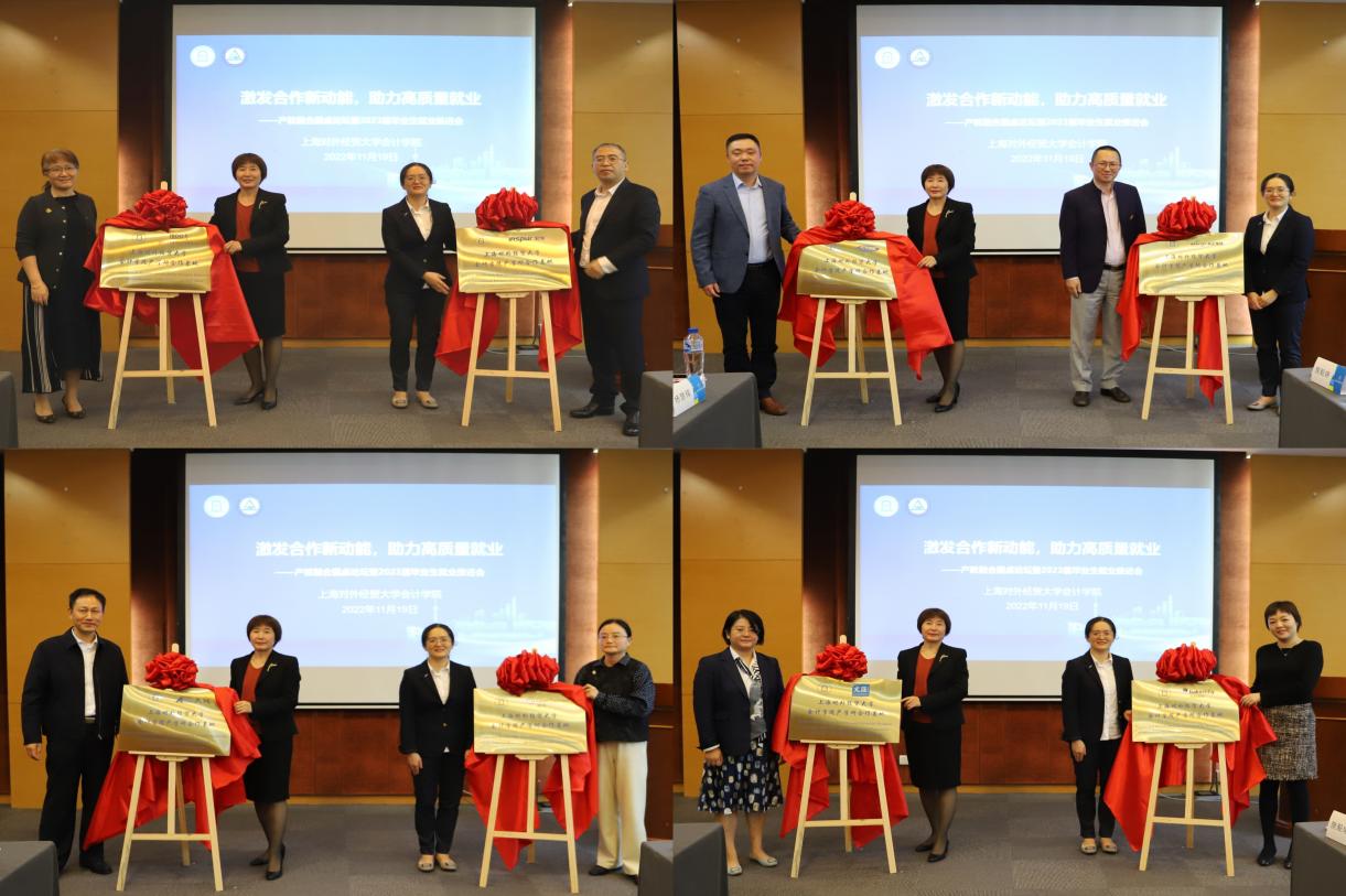 在產學研合作新基地授牌儀式上,裴瑱和張天舒代表學院分別與浪潮集團、立信會計師事務所(特殊普通合伙)、上海榮正企業咨詢股份有限公司、上會會計師事務所(特殊普通合伙)、致同會計師事務所(特殊普通合伙)、天健會計師事務所(特殊普通合伙)上海分所、天職國際會計師事務所(特殊普通合伙)上海分所、上海文匯審計咨詢管理中心這8家企業的代表,共同為產學研合作基地揭牌。