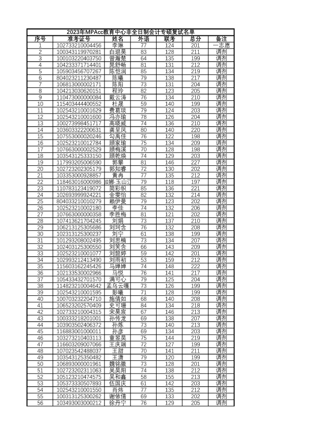 2023年MPAcc教育中心非全日制會計專碩復(fù)試名單