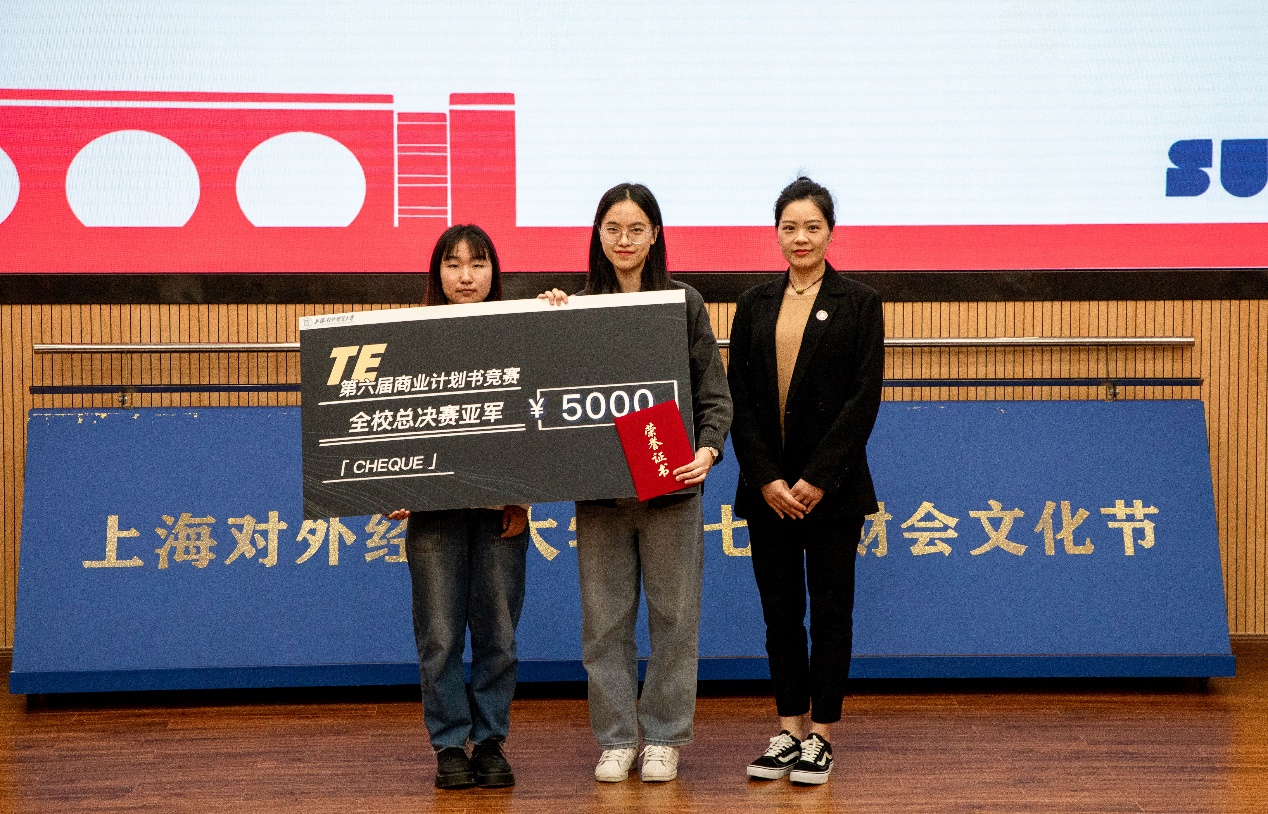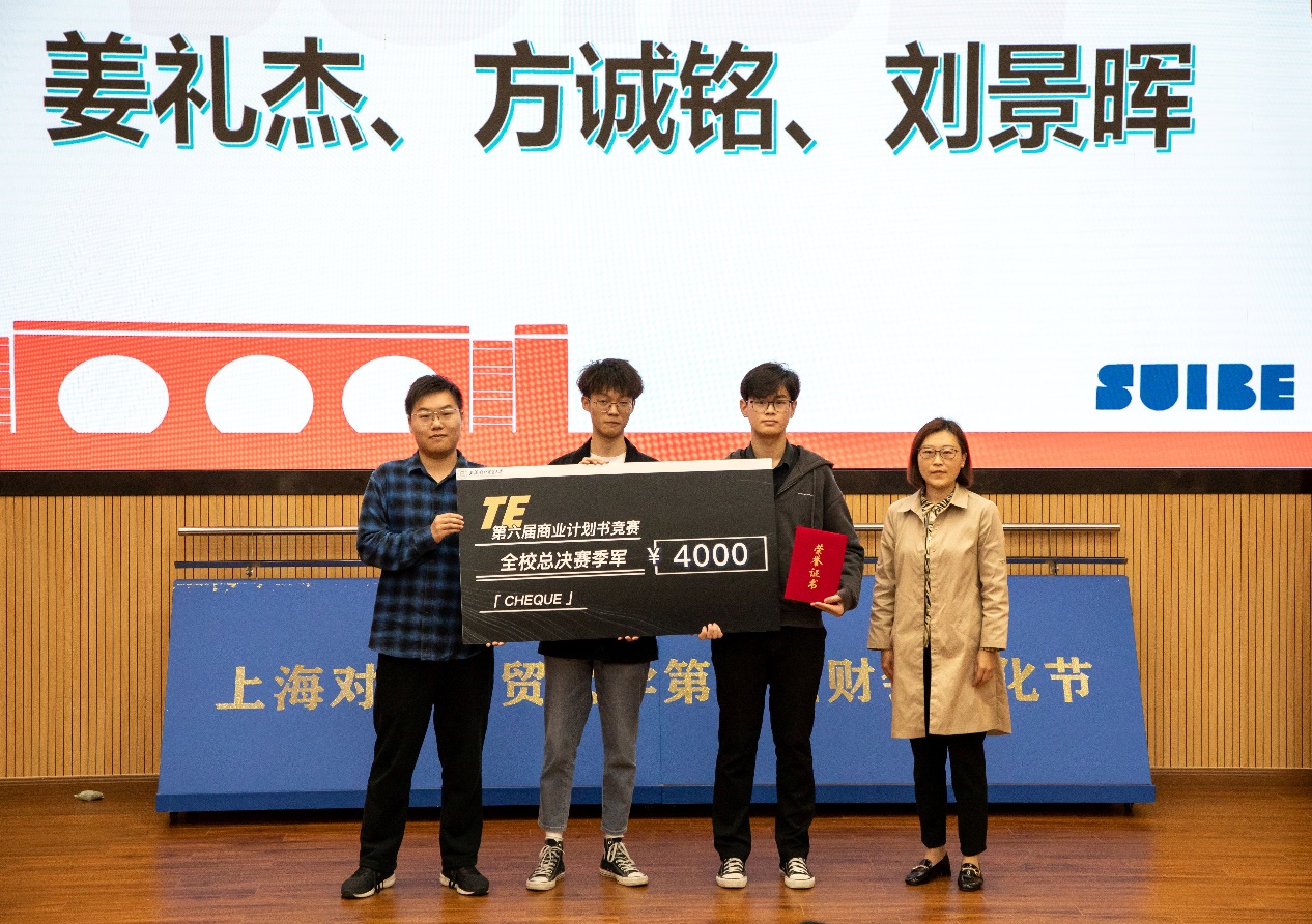 施毅婷宣讀第六屆TE商業計劃書競賽獲獎名單,關印、虞婭娜、魯瑛均三位老師分別為獲獎隊伍頒發獎狀和獎金。