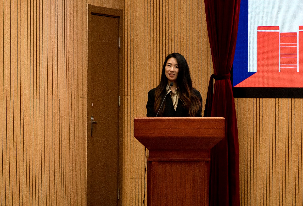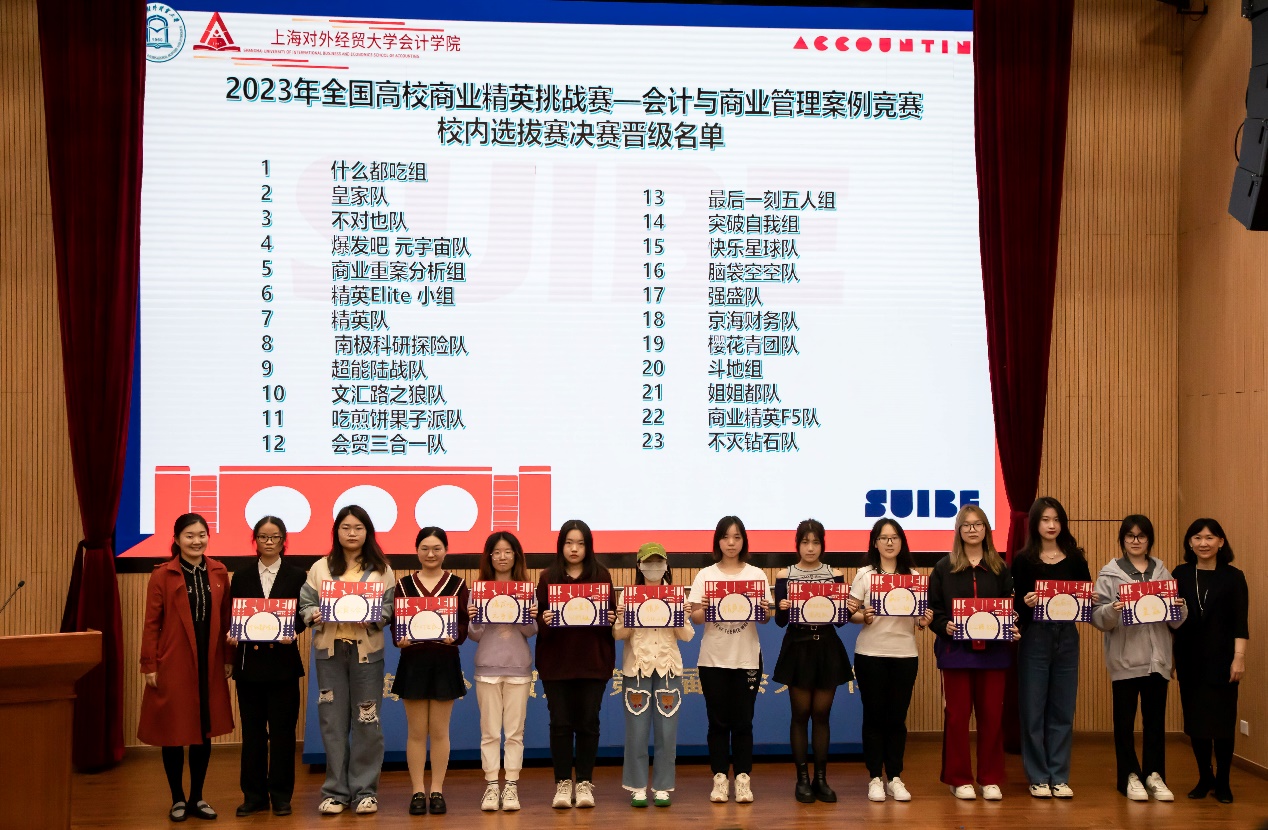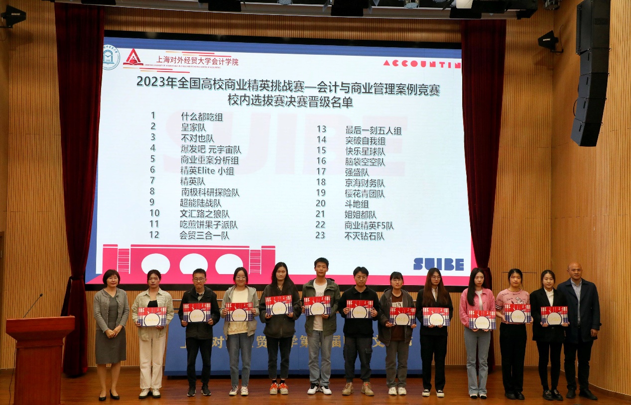 楊慧輝宣讀上海對外經貿大學第十五屆財會精英挑戰賽決賽的晉級名單,并頒發晉級卡。