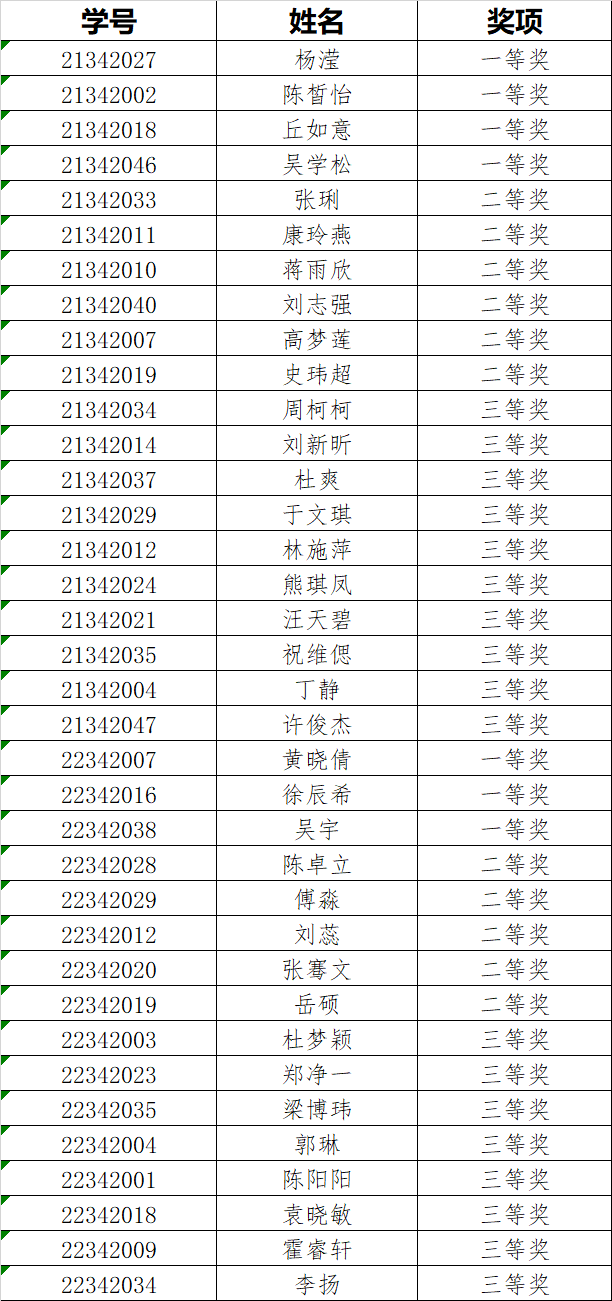 經核驗,22342016徐辰希競賽名次為其他類,重新算分后評二等獎,原22342028陳卓立排序上升獲評一等獎,特此說明。