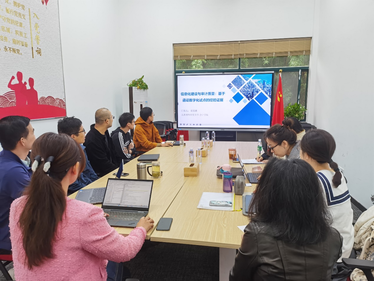 2023年10月13日下午,會(huì)計(jì)學(xué)院青年博士先鋒號開展活動(dòng),梁思源博士進(jìn)行論文報(bào)告,題目是“信息化建設(shè)與審計(jì)質(zhì)量:基于函證數(shù)字化試點(diǎn)的經(jīng)驗(yàn)證據(jù)”。本次報(bào)告圍繞函證數(shù)字化對審計(jì)質(zhì)量影響的相關(guān)問題展開。