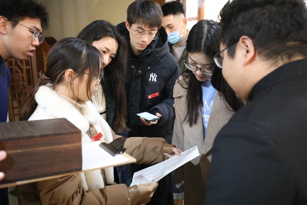 本次黨課聚焦沉浸式、交互式體驗,授以體驗者一名新中國記者的身份,回到祖居,尋找家人留下的最后一封彌足珍貴的家書。學院師生黨員積極投入到此次黨課中,共同演繹以寄情愛人、稟告父母、勉勵兒女為主題的三封家書背后的故事,深刻感受名人家書所傳達出的堅定信仰、愛國情懷、奮斗精神、真摯情感。通過一道道“解謎”,參與師生過五關斬六將,最終獲得寶貴的“傳家寶”。情景黨課之后,師生黨員共同誦讀陳云同志撰寫的《怎樣做一個共產黨員》,并在主題明信片上寫下黨課感悟,將場景體驗轉化為初心斗志和繼續前行的強大動力。