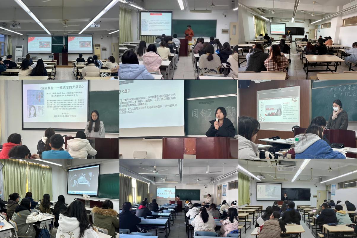 施毅婷帶領11名新發展黨員進行入黨宣誓。向全體師生介紹國家公祭日設立的歷史背景及重要意義。并結合烈士們的光輝事跡,引導在場同學思考青年一代的初心使命和責任擔當,應銘記歷史、傳遞真相,并用自身能力和終身事業助力國家高質量發展,播撒和平之種,在黨史學習教育中汲取繼續前行的精神力量。