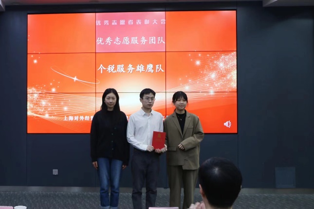 施毅婷宣讀了會計學院優秀志愿者名單、優秀組織者、優秀志愿服務團隊名單,周宇冬、司徒力云、施毅婷為獲獎隊伍頒獎。