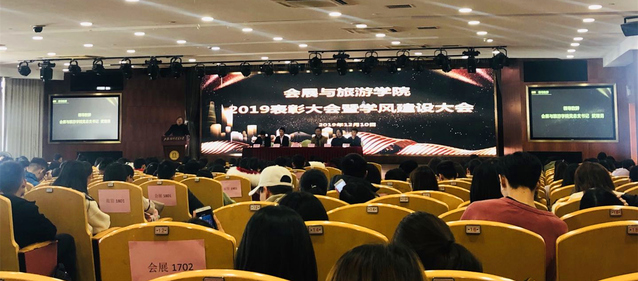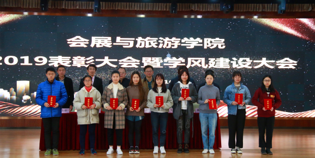 2019年12月10日中午,會展與旅游學院在信息樓507舉辦2019表彰大會暨學風建設大會。會展與旅游學院黨總支書記武增勇、學院副院長劉少湃、副院長田紀鵬、旅游管理系系主任張兆琨、新生班主任蔡萌、輔導員以及學院全體學生(含預科生、本科生和研究生)參加了本次大會。大會由會展與旅游學院黨總支副書記馮昕主持。會上分別對學院2019“年度之星”獲得者、各類獎學金獲得者、優秀團員優秀團干部以及優秀學生、優秀學生干部進行了表彰,并播放了風采展示視頻。2019“學術之星”王博宇、“學習之星”涂存紅作為獲獎學生代表發言,分享個人在校學習、工作的經歷、經驗與感受。