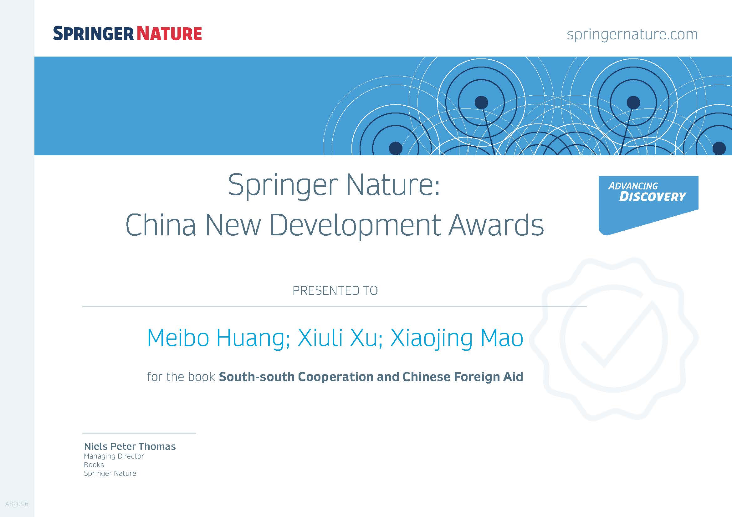 9月28日施普林格·自然(Springer Nature)宣布10部學術圖書榮獲今年的 “中國新發展獎(China New Development Awards)” 。該年度獎項由施普林格·自然于去年發起設立,旨在表彰施普林格·自然集團旗下Springer或Palgrave Macmillan出版的對聯合國可持續發展目標(SDG)有重要推進作用的學術書籍。我校黃梅波教授2019年主編的South-South Cooperation and Chinese Foreign Aid為今年的10部獲獎圖書之一。