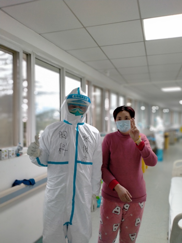 三月中旬以后,全國疫情形勢不斷向積極的方向發展。張俊杰所在的病區也有越來越多的患者從重癥轉為輕癥,從輕癥最終康復。在這段時間,張俊杰除了做好醫護工作外,有更多的時間和精力與患者進行交流和心理指導。在和患者的交流中,張俊杰感受到了武漢人民的友好和善良,也同他們結下了深厚的友情。張俊杰說,有時患者身體仍十分虛弱,但能自己做的事情盡量不麻煩醫護人員。有的重癥患者虛弱地連話都說不出來,但仍會以點頭的形式向醫護人員的護理表示感謝,這些小的細節都會讓他很感動,更讓他覺得做好醫護工作是一件很有意義的事。