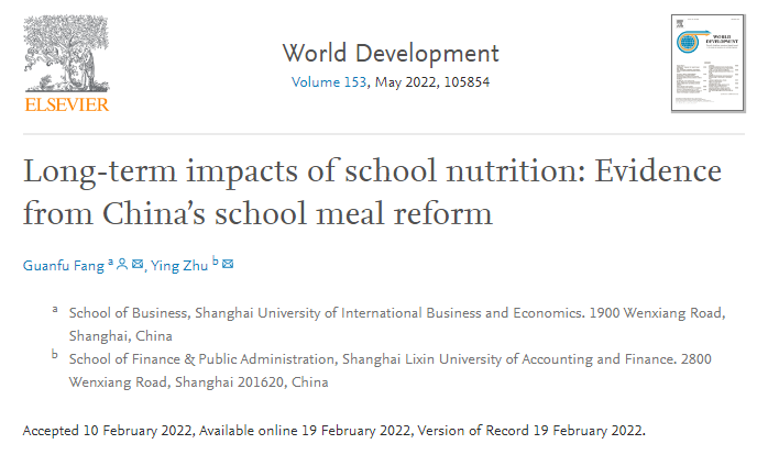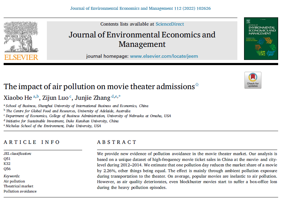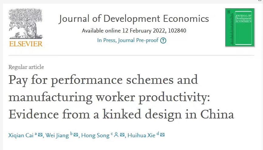 國際期刊方面,國際經(jīng)貿(mào)學院姜微副教授與其合作者撰寫的論文“Pay for performance schemes and manufacturing worker productivity: Evidence from a kinked design in China”被發(fā)展經(jīng)濟學國際頂級期刊Journal of Development Economics正式接受,于今年2月在線發(fā)表;論文使用一家中國一次性紙杯制造企業(yè)的生產(chǎn)和薪酬數(shù)據(jù)考察了非線性績效工資制度對雇傭工人勞動生產(chǎn)率的影響。論文的研究發(fā)現(xiàn)有助于理解企業(yè)雇員的差異化在薪酬體制的設計和效果中所起的作用,并為現(xiàn)代制造業(yè)生產(chǎn)中越來越多地采用非線性績效工資制度提供了新的見解。國際經(jīng)貿(mào)學院何曉波副教授與其合作者撰寫的論文“The impact of air pollution on movie theater admissions”被環(huán)境經(jīng)濟學國際頂級期刊《Journal of Environmental Economics and Management》正式接受,于今年2月在線發(fā)表。論文收集了2012-2014我國“電影—城市”雙重維度的高頻票房銷售數(shù)據(jù)并構建了獨有的數(shù)據(jù)集,研究發(fā)現(xiàn):在其他條件相同的情況下,一個污染日(空氣污染指數(shù)超過100)會減少一部電影的市場份額2.26%。國際經(jīng)貿(mào)學院方觀富講師與其合作者撰寫的論文“Long-term impacts of school nutrition: Evidence from China’s school meal reform”在發(fā)展經(jīng)濟學權威期刊World Development正式刊出。論文評估了農(nóng)村義務教育學生營養(yǎng)改善計劃的長期影響,結(jié)果發(fā)現(xiàn)童年時期曝露在學生營養(yǎng)改善計劃下,能顯著改善個人成年時期的認知能力和健康狀況。