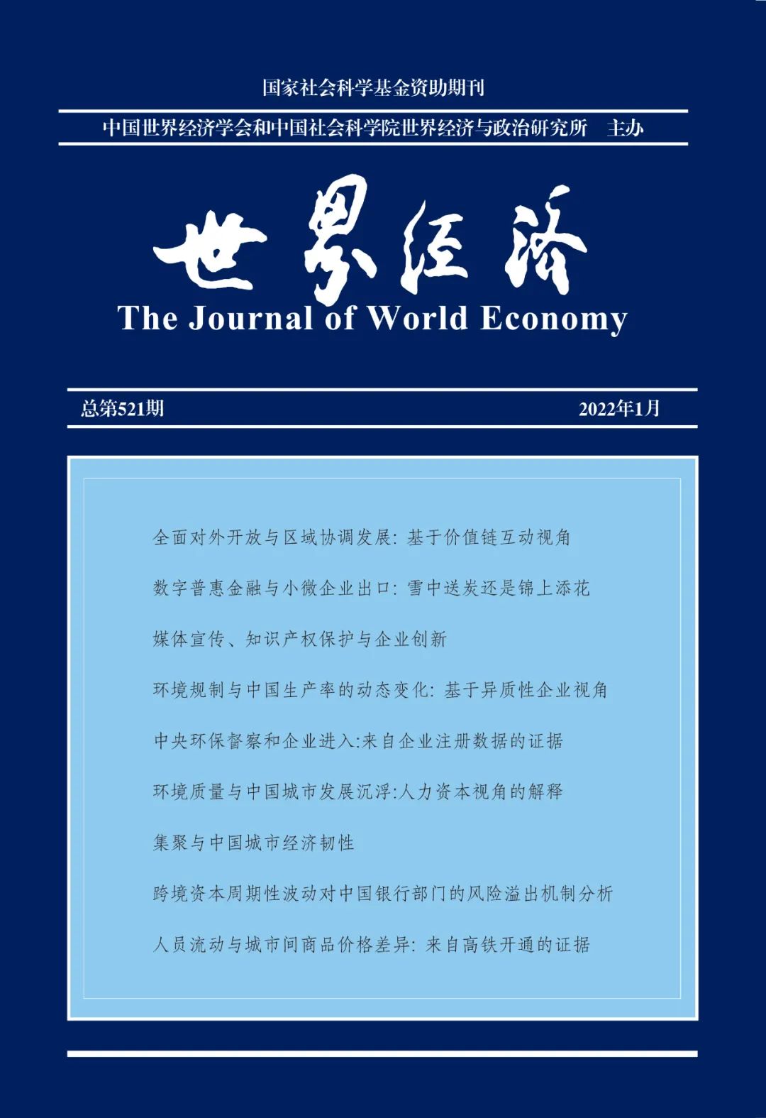 國內(nèi)期刊方面,國際經(jīng)貿(mào)學院何歡浪教授、章韜副教授與其合作者的論文《媒體宣傳、知識產(chǎn)權保護與企業(yè)創(chuàng)新》和國際經(jīng)濟貿(mào)易研究所余麗麗助理研究員與其合作者的論文《全面對外開放與區(qū)域協(xié)調(diào)發(fā)展:基于價值鏈互動視角》,在國內(nèi)經(jīng)濟學科中文權威期刊《世界經(jīng)濟》2022年第1期同期刊出。前者通過收集中國省級官方媒體對知識產(chǎn)權的宣傳傾向信息和企業(yè)層面的專利信息,實證檢驗官方媒體關于知識產(chǎn)權保護的宣傳對中國企業(yè)創(chuàng)新的影響,研究認為官方媒體關于知識產(chǎn)權保護的宣傳對企業(yè)創(chuàng)新具有正向的激勵作用,不僅促進了企業(yè)專利數(shù)量的增長,還推動了企業(yè)專利質(zhì)量的提升。后者在價值鏈互動視角下,分析了外需對國內(nèi)垂直分工和協(xié)調(diào)發(fā)展的促進作用,并識別了其中關鍵的生產(chǎn)層級特征和生產(chǎn)路徑分布。研究結(jié)果有助于從推動形成全面對外開放新格局以及促進產(chǎn)業(yè)空間合理分布等層面,為提升區(qū)域發(fā)展水平和質(zhì)量,實現(xiàn)區(qū)域協(xié)調(diào)發(fā)展提供有益參考。國際經(jīng)濟貿(mào)易研究所鐵瑛副研究員與其合作者的論文《貿(mào)易中介、信息不對稱與不穩(wěn)定出口關系》在國內(nèi)經(jīng)濟學科中文權威期刊《中國工業(yè)經(jīng)濟》刊出。論文基于2000—2016年的長觀察窗口識別了中國的不穩(wěn)定出口關系,嘗試在信息不對稱背景下從貿(mào)易中介視角對不穩(wěn)定出口關系的發(fā)生進行解釋,論文認為不穩(wěn)定出口關系是中國出口廣泛存在且不容忽視的組成部分,推進出口“穩(wěn)中求進”有賴于引導和規(guī)范貿(mào)易中介行為,降低企業(yè)出口固定成本。