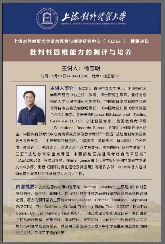 【上經(jīng)貿(mào)大·科研】 第五周學(xué)術(shù)活動(dòng)預(yù)告