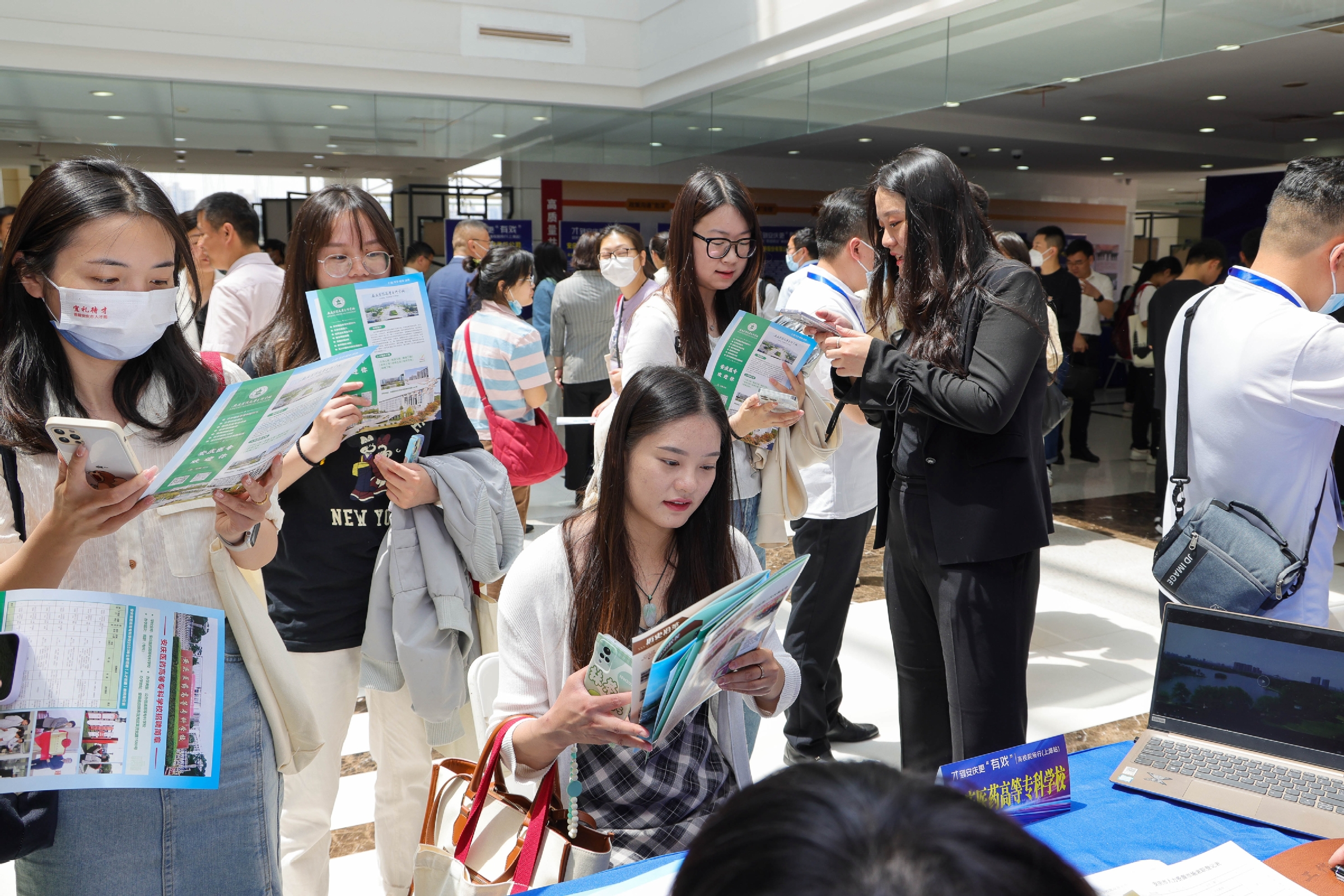 儀式后的主題招聘會上,安慶市屬高校、國有企業、重點企業等30多家單位帶來近千個優質崗位,面向畢業生進行現場招聘、政策咨詢、面試洽談。來自上經貿大以及上海交通大學、東華大學、上海理工大學等多所高校的畢業生到場參加“雙選會”,市、校相關領導參與巡場。