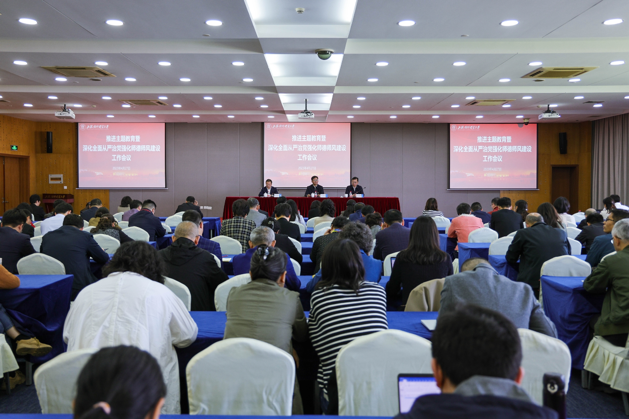 4月27日上午,學(xué)校在松江校區(qū)信息樓526報告廳召開推進主題教育暨深化全面從嚴治黨強化師德師風(fēng)建設(shè)工作會議,深入貫徹落實黨的二十大精神、二十屆中央紀(jì)委二次全會精神,深刻領(lǐng)會主題教育關(guān)于深化全面從嚴治黨的工作部署,貫徹執(zhí)行市委、市紀(jì)委、市教衛(wèi)工作黨委關(guān)于全面治黨的工作要求,布置學(xué)校2023年度全面從嚴治黨和師德師風(fēng)建設(shè)工作。全體校領(lǐng)導(dǎo)、中層領(lǐng)導(dǎo)人員、二級單位黨組織紀(jì)檢委員、教工黨支部書記、系(專業(yè))主任、學(xué)位點負責(zé)人、黨風(fēng)廉政監(jiān)督員(特邀監(jiān)察員)參加會議。