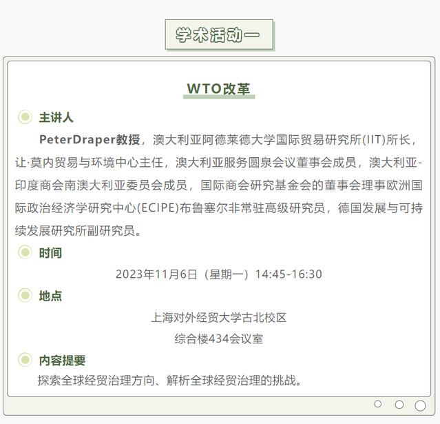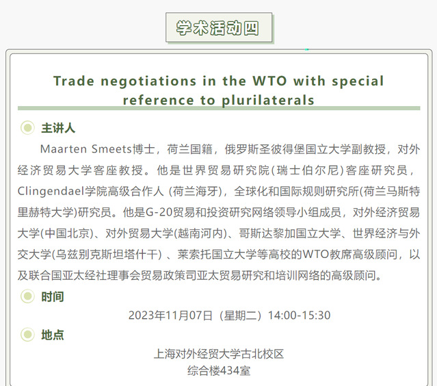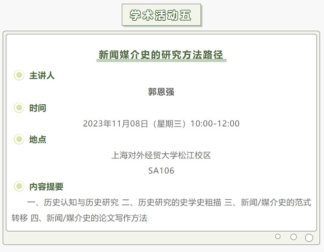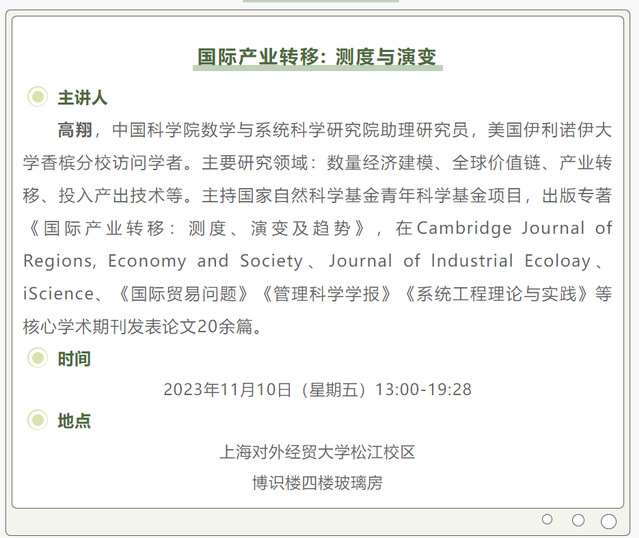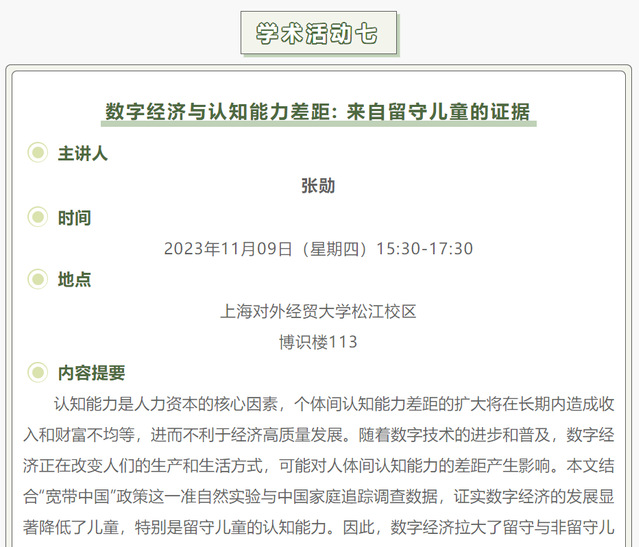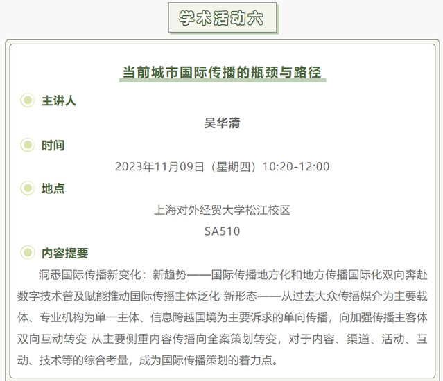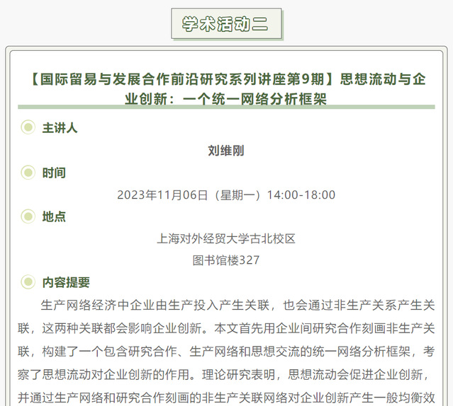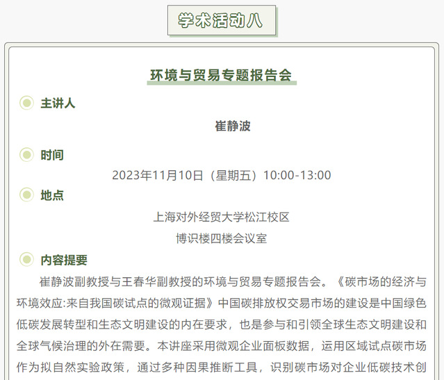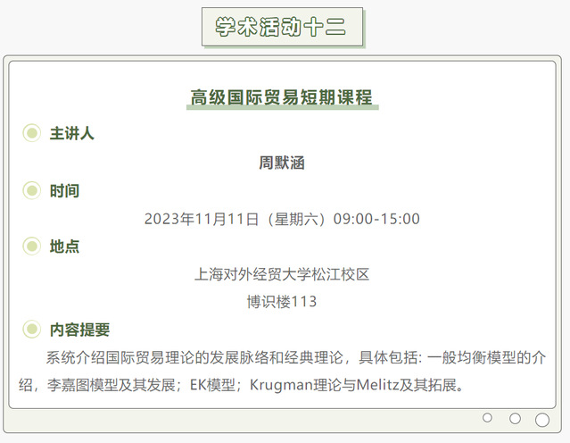 【上經貿大·科研】第八周學術活動預告