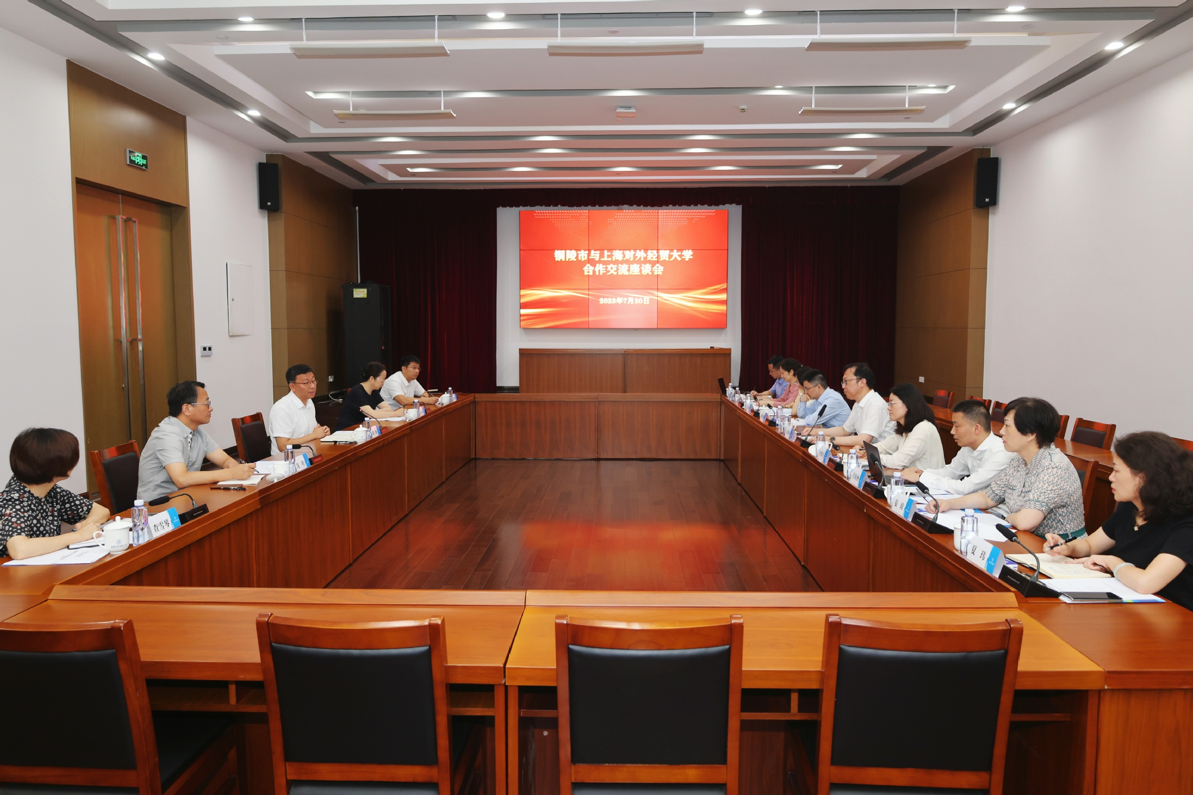 銅陵市商務局黨組書記、局長張瓊,黨組成員、副局長沈明等同志陪同調研;學校黨委常委、統戰部部長、金融管理學院黨委書記許繼亮,國際經貿學院院長何歡浪,科研處處長閆海洲,招生就業處處長魏舒,校友工作聯絡處處長晏瓊,開放教育學院直屬黨支部書記饒蕓燕,學校辦公室副主任、合作交流辦公室主任巫雪松,國際經貿創新與治理研究院(智庫中心)副院長夏瑋等參加交流座談。