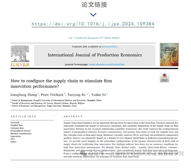 學術前沿 | 我校張亮亮博士合作論文在《International Journal of Production Economics》發表