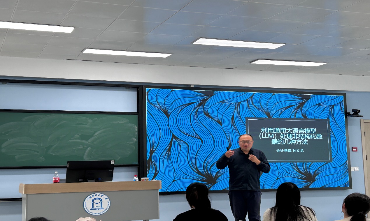 2024年12月3日,由科研處舉辦的“AI賦能科研能力提升系列培訓講座”迎來了第六期活動。上海對外經貿大學會計學院的孫文龍副教授以“利用通用大語言模型處理非結構化數據的幾種方法”為主題,為大家帶來了一場深具啟發性的專題講座。此次講座由科研處處長閆海洲主持,學校80余名教師參與。