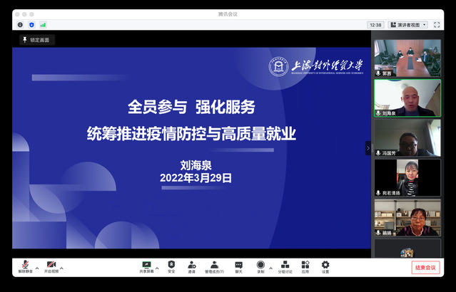 學院黨總支副書記劉海泉以“全員參與,強化服務,統籌推進疫情防控與高質量就業”為題進行了專題匯報,從“一對一”溝通了解狀況、實時更新“一人一檔”、積極推薦就業信息、關注重點學生群體等方面介紹了學院就業的整體情況,從宏觀環境、就業觀念、職業規劃、個人能力等角度分析了當前就業未落實學生存在的問題,從進一步拓展廣度、加強深度以及提升溫度等三個方面提出下一步工作打算。