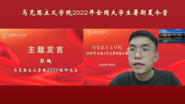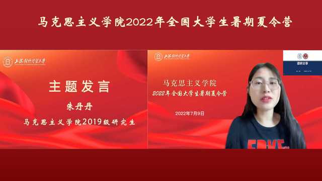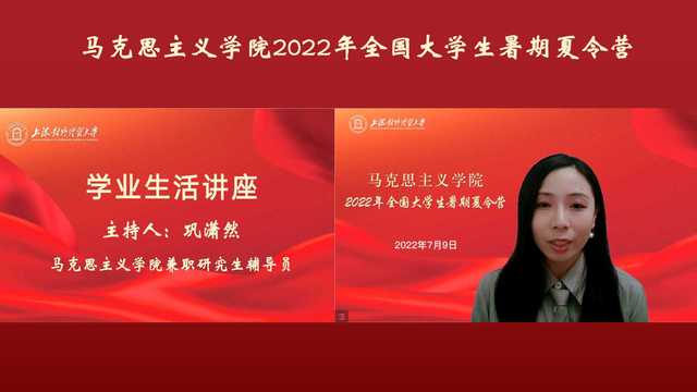 湖南人文科技學院張倪:非常榮幸能夠參加此次上海對外經(jīng)貿(mào)大學馬克思主義學院的線上夏令營。通過聽取各位老師深入淺出的講座,與學長學姐分享的學習生活經(jīng)驗,我深刻地感受到了上經(jīng)貿(mào)大馬院優(yōu)良的學術(shù)氣氛,扎實的科研能力以及嚴謹?shù)膶W術(shù)態(tài)度。在師生交流的環(huán)節(jié)中,我感受到了老師們的親切,我在此期間暢所欲言,提出自己在研究上的存在的問題,也得到了老師們細致詳盡的解答。上海對外經(jīng)貿(mào)大學馬克思主義學院是一個集智慧與愛與一體的學府,也是我無限向往的學府!