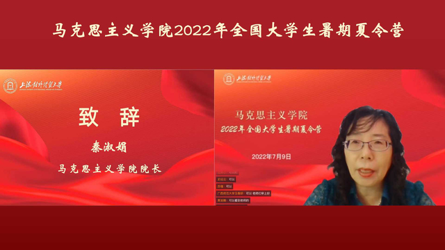 開營儀式上馬克思主義學院院長秦淑娟致歡迎辭。她首先代表學院對各位營員的到來表示熱烈歡迎,并對學院的學科特色、近年來教學科研成果、人才培養(yǎng)等作了介紹。她提出本次夏令營是學校間學術(shù)交流、相互學習的平臺,是師生互動、創(chuàng)新思維的平臺,是同學們相互分享、相互鼓勵的平臺,也是同學們關注上海、了解我校、了解馬院、師生交流的平臺,歡迎大家報考我校馬院繼續(xù)深造,與我校馬院共同成長。