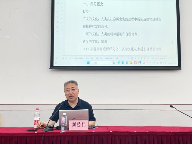 5月23日,馬克思主義學院主辦的“馬克思主義理論大講堂”第九期講座開講。為深入學習領會習近平文化思想,貫徹落實全國宣傳思想文化工作會議精神,切實把握“七個著力”的實踐要求,本次講座邀請教育部高校教指委委員、國家課程思政教學名師、全國高校思政課名師工作室主持人、上海立信會計金融學院馬克思主義學院院長、上海市習近平新時代中國特色社會主義思想研究中心立信研究基地執行主任、博士生導師劉經偉教授作“文化興國運興”專題講座。本次講座由上海對外經貿大學馬克思主義學院教授委員會主任秦淑娟主持,馬克思主義學院教師和研究生現場聆聽講座。