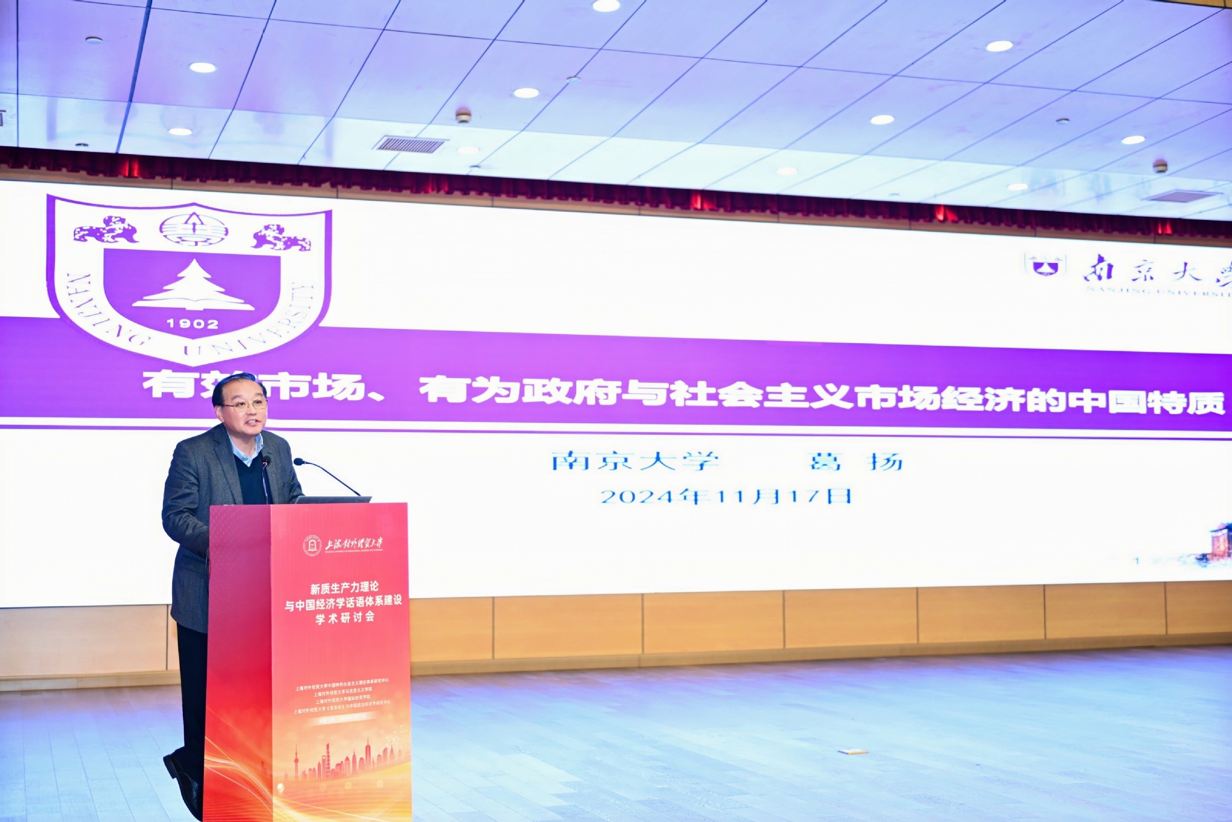 南京大學經濟學院葛揚教授作了題為《有為政府、有效市場:社會主義市場經濟的中國特質》的主題發言,從政府和市場的關系角度,構建了發展新質生產力的體制機制。