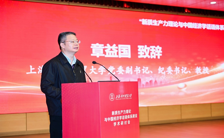 校黨委副書記、紀委書記章益國教授出席開幕式并致辭,他首先代表學校對前來參會的各位嘉賓表示歡迎和感謝。他表示本次大會對于學習貫徹落實黨的二十屆三中全會精神,深化先進生產力的學理認知,助推新質生產力與中國經濟學話語體系的建設與發展具有重要意義。長期以來,學校高度重視馬克思主義理論學科、馬克思主義學院的建設和發展。自建校以來開設《馬克思主義政治經濟學概論》課程64年,該課程入選了第二批國家級一流本科課程和上海市首批一流本科課程。他肯定了馬克思主義學院取得的諸多成就,希望馬克思主義學院通過本次大會進一步增進學術交流和合作,獲得更多的發展機會。