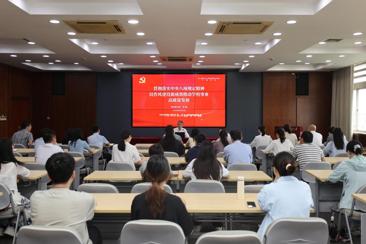祁明從深刻領會中央八項規定精神的重大意義,中央八項規定精神的重要內容和貫徹落實學習教育的具體要求,以作風建設新成效推動學校事業高質量發展三個部分,為師生黨員講授了一堂兼具理論深度與實踐指導性的黨課。